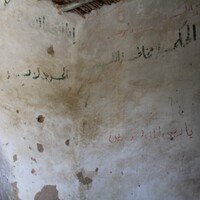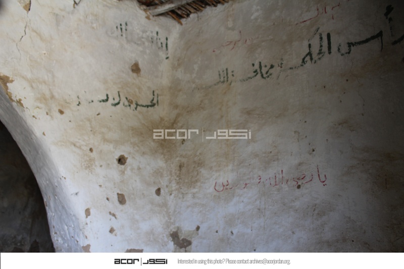 Jordan. At-Tafilah, Busayra, interior view of 19th century building with graffiti made by local residents
