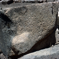 Jordan. Qasr of Iraq al Amir, Late Hellenistic unfinished Lion (upside down) - looking west