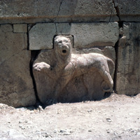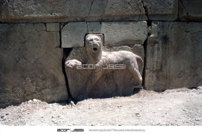 Jordan. Qasr of Iraq al Amir, Late Hellenistic feline fountain - looking west