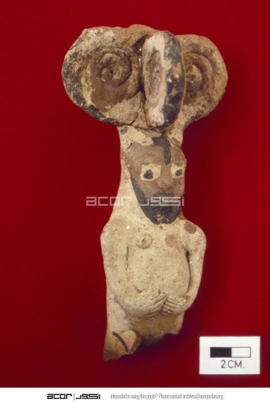 Jordan. Amman, tomb on Prince Talal Street, Iron II (Ammonite) hermaphrodite figurine, in the collection of Jordan Archaeological Museum at Amman Citadel, museum number: J.1810; 1950