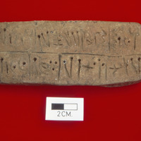 Jordan. front view of Late Bronze IIB - Iron IB inscribed Clay Tablet from Deir 'Alla