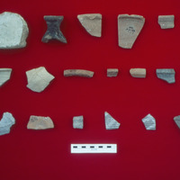 Jordan. Tall Hisban, Late Byzantine white painted sherds and Red Wares from Tell Hesban