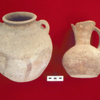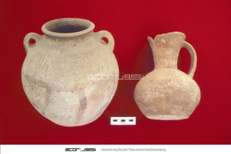 Jordan. Tall Al-Husn, Early Bronze IVB unburnished pots from Tomb, in the collection of Jordan Archaeological Museum at Amman Citadel, museum numbers J.992 (left) and J.984 (right)