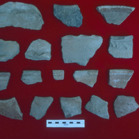 Jordan. Khirbat Iskandar, Early Bronze IIIB (top row), and Early Bronze IVA (rest) burnished and pattern - combed sherds