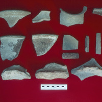 Jordan. Tall Alla / Tall el-Handaquq South, Early Bronze III burnished and pattern - combed sherds (and narrow "Cannaanean" blades)