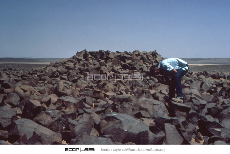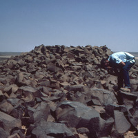 Jordan. Qa' Abu Al Hussein, Looking Southeast - close up view of Cairn in el-Harrah Region