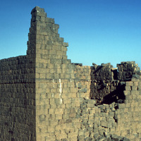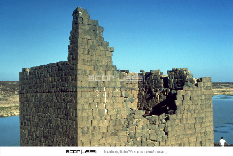 Jordan. Qasr Burqu', Looking Northwest - close up view of Tower (lake created by modern dam)