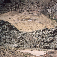Jordan. Wadi Rum Temple, Looking West - general view of Temple Site (against cliff)