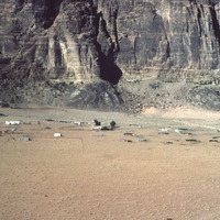 Jordan. Wadi Rum Temple, Looking West - general view of Region (temple site right, center, against cliff)
