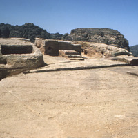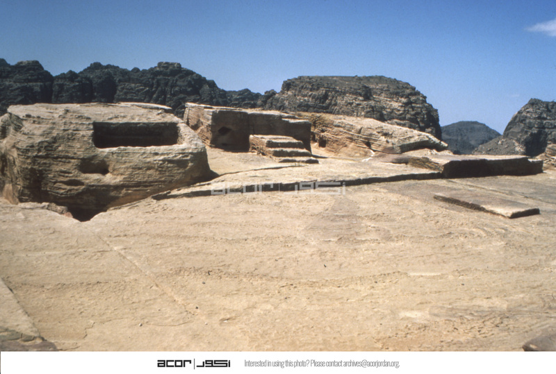 Jordan. Petra, Looking West - close up view of High Place of Sacrifice with round altar and main altar