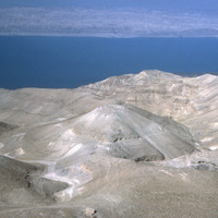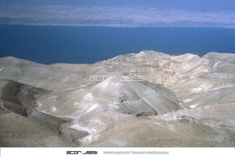 Jordan. Machaerus (Mukawir/Qal‘at al-Mishnaqa), looking West, general view of site (with Dead Sea in background)