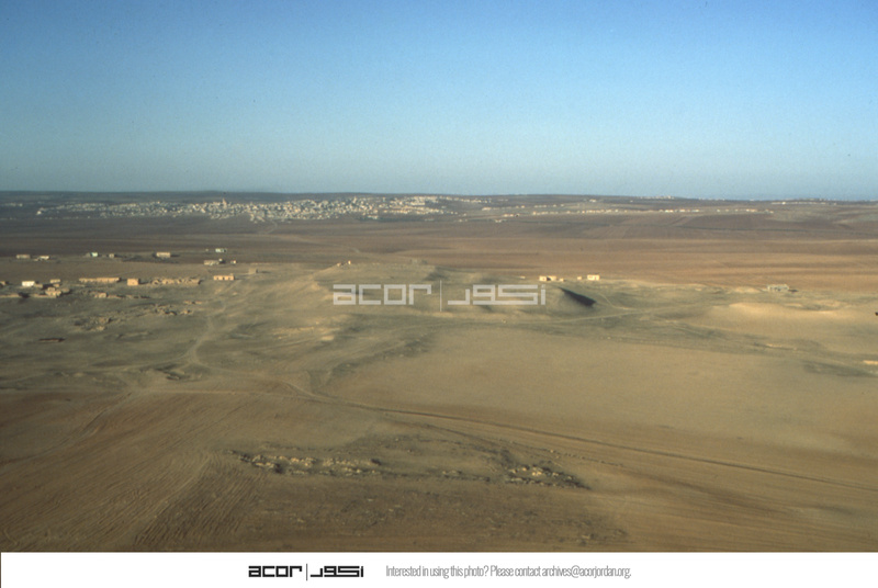 Jordan. Jalul, Aerial photograph, looking West, general view (with modern city of Madaba in the distance)