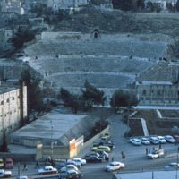 Jordan. Amman, Downtown, looking South, close up view of Roman Theater and Forum