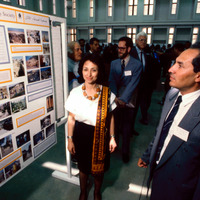 Jordan. Irbid, International Conference on the History and Archaeology of Jordan (ICHAJ) 5th conference, 12-17 April 1992. Front, from left: Muna Zaghloul, Former Head of Publications at the Department of Antiquities and Mohammed Najjar. Background, from