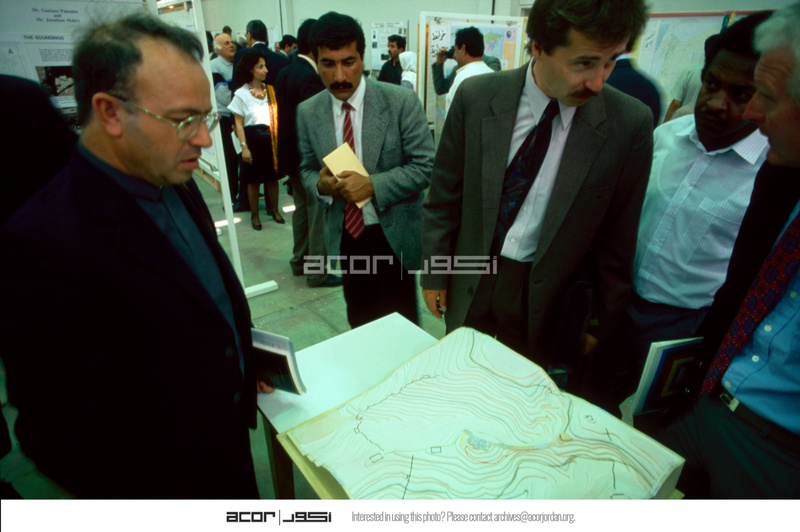 Jordan. Irbid, International Conference on the History and Archaeology of Jordan (ICHAJ) 5th conference, 12-17 April 1992. From left: Michele Piccirillo, Hakim Mahameed, Zbigniew Fiema. Background: Muna Zaghloul, Former Head of Publications at the Departm
