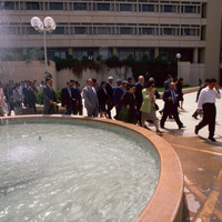 Jordan. Irbid, International Conference on the History and Archaeology of Jordan (ICHAJ) 5th conference, 12-17 April 1992, H.R.H. Prince Raad bin Zeid, Safwan Tell, H.R.H. Princess Basma Bint Talal, water fountain
