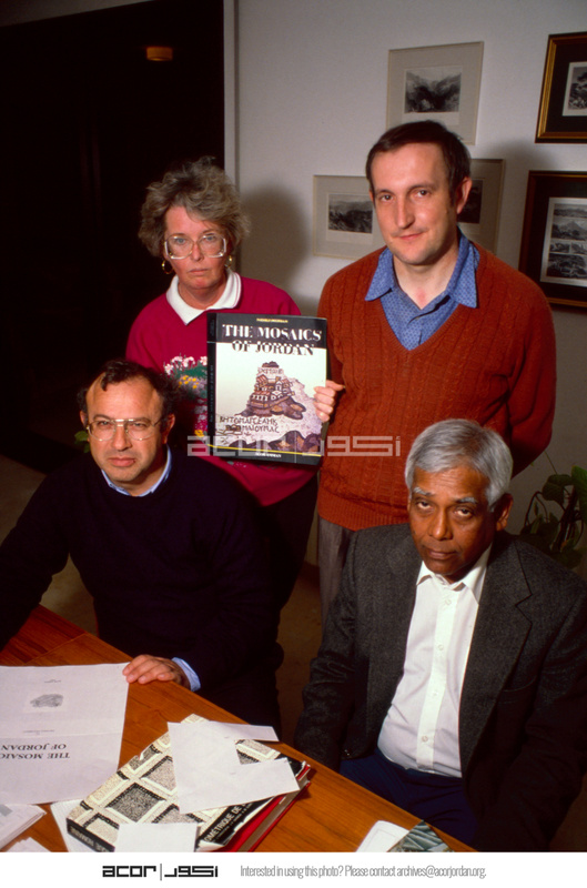 Jordan. ACOR. Proofs of ACOR Publication The Mosaics of Jordan by Michele Piccirillo. From bottom left, clockwise: Michele Piccirillo, Patricia Bikai, Eugene Oliato and Shishir Dotta