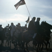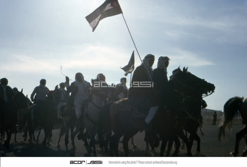 Jordan. Men on horses carrying flag of Jordan