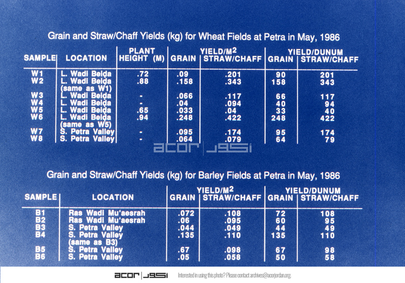 Jordan. Petra, Wheat and barley yields at Petra 1986