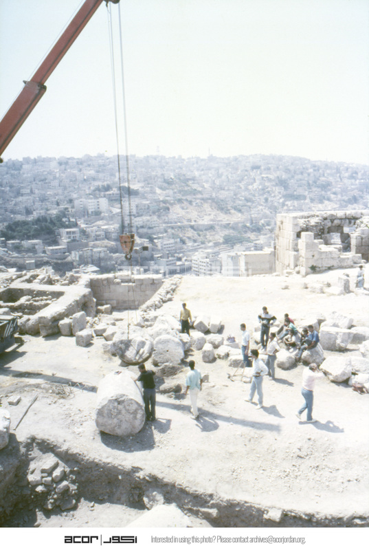 Jordan. Amman, Citadel (Jabal al-Qala'a), Temple of Hercules, moving capital of southeast column collapse