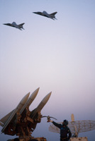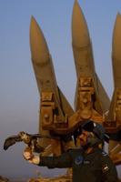 Falcon, missile launcher and jets at Muwaffak Salti Air Base