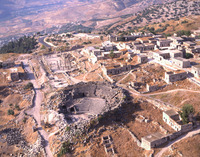 Umm Qais (Gadara), west theater, Basilica terrace and Ottoman village, from west