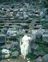 Umm Qais (Gadara), West theater and octagon church, marble statue of Tyche seated in the audience
